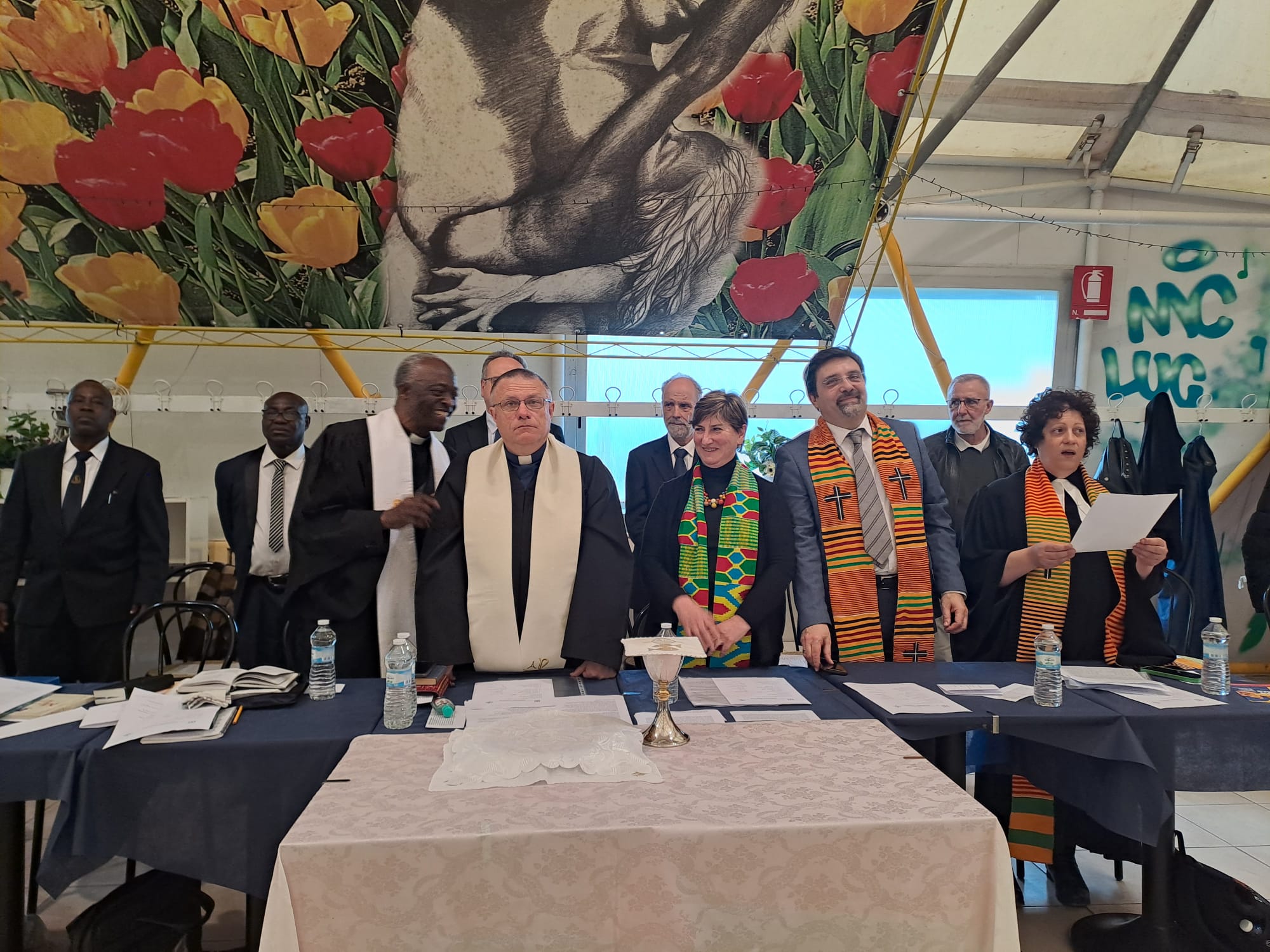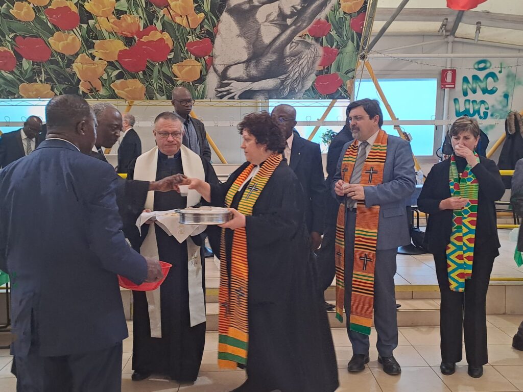 Domenica delle Palme si è svolta, a Parma, l’Easter Convention che ha riunito delegazioni provenienti dalle chiese metodiste e valdesi del Secondo Distretto, coinvolte da lungo tempo nel percorso “Essere Chiesa Insieme”. L’incontro annuale per le famiglie ghanesi sparse fra Nord Est, Emilia Romagna e Lombardia è occasione non solo di rivedersi, ma soprattutto è un momento per condividere tutti insieme l’annuncio pasquale e rinnovare l’impegno verso la missione. La liturgia del culto proposta è stata costruita tenendo conto della spiritualità ghanese: la danza ed il canto hanno rallegrato gli animi dei presenti, predisponendoli ad aprire il proprio cuore. Il coro, formato dall’unione dei diversi cori ghanesi locali, è stato diretto magistralmente dalla sorella Nora Thompson: sono stati eseguiti inni della tradizione presbiteriana e metodista, compreso l’immancabile inno “Children of Jerusalem” di John Henley (1800-1842), accompagnato dall’immancabile sventolio dei fazzoletti bianchi, a ricordare quello delle palme durante il magnifico ritornello “Hark, hark, hark! While infant- voices- sing, Hark, hark, hark! While infant- voices- sing Loud ho san- nas,- loud ho san- nas,- Loud ho san- nas- to our king”. Ampio spazio è stato poi dato alla preghiera di intercessione, proposta quasi all’inizio del culto e guidata dal pastore George Ennin che ha esortato l’assemblea invitandola a pregare per i giovani, per la missione della Chiesa, per il lavoro dei pastori e delle pastore, ma anche per chi è chiamato a governare la cosa pubblica, tanto in Italia quanto in Ghana. Vi è stato dunque un momento di raccoglimento e riflessione per quanti intraprendono un viaggio di migrazione. La predicazione è stata affidata alla moderatora della Tavola Valdese, Alessandra Trotta, che ha invitato l’assemblea a considerare i testi dedicati all’annuncio della resurrezione di Gesù Cristo. Quattro vangeli, quattro racconti diversi che leggono l’evento straordinario ed indescrivibile della resurrezione da quattro punti diversi di osservazione. Tutti e quattro i vangeli parlano dello stesso fatto, ma tutti ne riportano una prospettiva diversa, introducendo una pluralità pur nell’unicità del fatto. Ogni vangelo trasmette una testimonianza di quell’unico evento che ha cambiato la storia del mondo. In particolar modo la moderatora si è voluta soffermare sul testo di Marco 16:1-8. La richiesta di comunicare ai discepoli che Gesù il Risorto li attende precedendoli in Galilea significa che i discepoli sono chiamati a mettersi in cammino, che è anche un ritorno alla Galilea, cioè la casa per molti di loro. Questo apre un parallelismo con la realtà che molti fratelli e sorelle stanno vivendo: molti sono arrivati da poco o sono nati in Italia, ma molti hanno vissuto a lungo lontano da casa e raggiunto un’età nella quale è ora pensabile un ritorno in patria. Ma al pari dei discepoli è un ritorno a casa accompagnato da un cambiamento. La resurrezione ha cambiato la prospettiva dei discepoli, ha aperto loro gli occhi ed il cuore ad una nuova speranza. Così anche noi tutti, discepole e discepoli, siamo chiamati nella nostra diversità a metterci in cammino, in missione, per testimoniare la speranza nel Risorto; ognuno di noi avendo maturato le proprie esperienze di vita, avendo ricevuto la Parola, sarà a sua volta artefice dell’annuncio alle nuove generazioni. Il Presidente dell’OPCEMI, pastore Luca Anziani, nel salutare l’assemblea ha voluto portare una personale testimonianza di come, nonostante la difficoltà del lavoro per le chiese, spesso un evento inaspettato possa cambiare la prospettiva rispetto a quelle stesse difficoltà e risvegliare così il senso della missione.