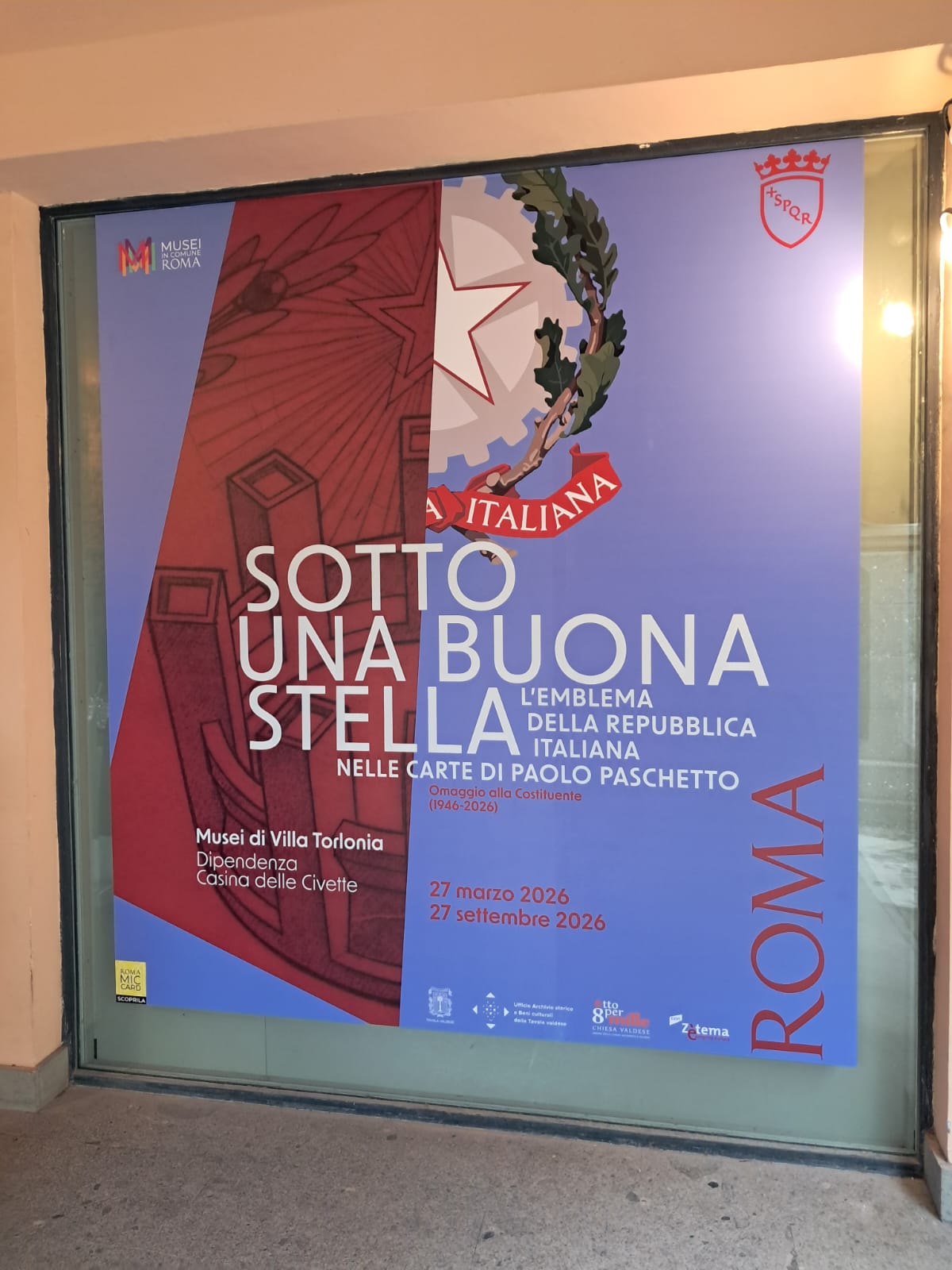 L’inaugurazione si è tenuta il 26 marzo 2026 presso Villa Torlonia, Dipendenza della Casina delle Civette, via Nomentana 70. La mostra è in esposizione fino al 27 settembre p.v.; orari di visita: dal martedì alla domenica ore 9.00-19.00.
